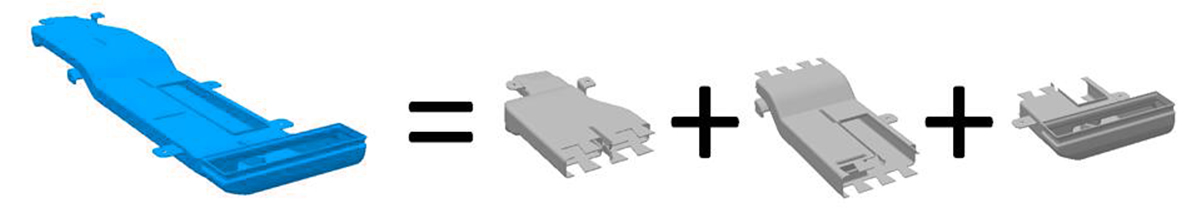 汽车仪表盘的细长类零件,需要分段切割才能在缸体内进行有效烧结成型,为便于后续有效地拼接和紧固,我们采用“鸠尾”的切口形状,这样拼接后能保证接口在平面方向的强度。拼接时,采用化学药剂进行粘接,然后打磨,以保证其强度和精度不亚于一体式打印结果。