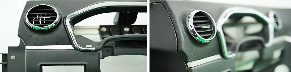 在仪表盘上的空调风道出风口格栅主要是用于微调风向,由很多零件组成,结构复杂,在没有模具的情况下,前期开发困难很大,几乎无法实现。但的3D打印应用解决方案能够一次性整体打印并实现。