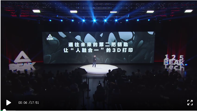 正如发布会中所讲,若不是匹克的坚持,国内3D打印运动鞋将没有太多市场可言。即使不如Adidas那样的市场量,但国货之光足以让我们从业人员值得书写。作为国产运动品牌第一个将“3D打印技术”应用在产品上的企业,匹克不断在引领着行业的创新,为实现大规模定制化量产以及从数据接受、产品备料、制作、包装和运输,全程无人化的目标,匹克打造了“万能智造局”。最后附大会内容全部视频。