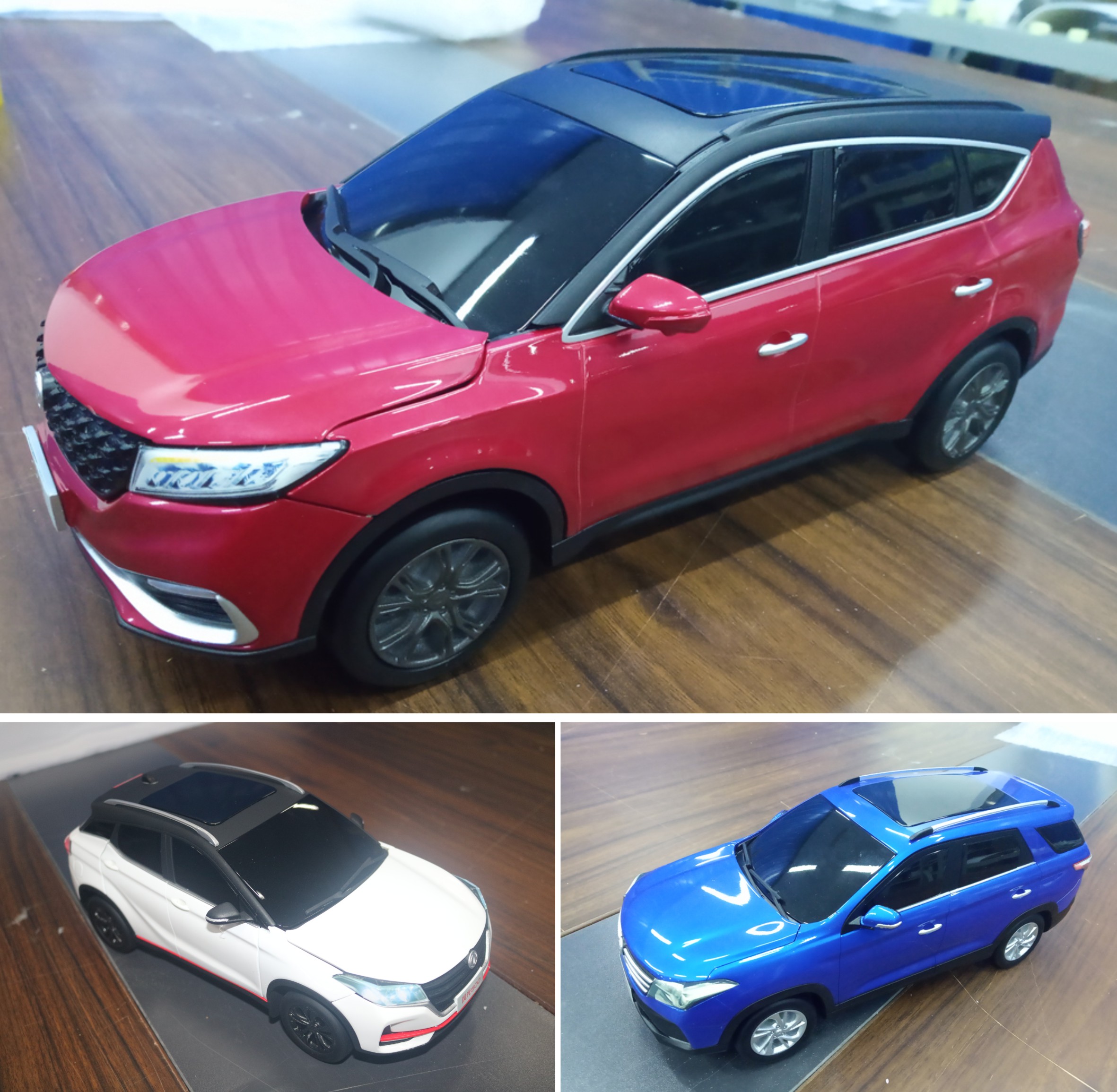 本次为“东风小康”的线上直播活动制作了多个热销车型的模型,采用光敏树脂、尼龙等材料,运用打磨、喷亮漆,粘接组装等工艺,仅用10天时间,就全部完成。其产品造型、表面处理、耐用度、售后服务等各方面均得到客户认可。