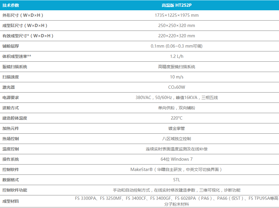 超高温、特智惠商用型3D打印智造平台252P系列,包含超高温版ST252P、高温版HT252P以及一款百万以内首选的尼龙开源工业3D打印机eForm。凭借其高温烧结能力、高性价比及精益求精的品质保证,252P系列完美诠释了3D打印智造新高度,成为智领新一代非金属3D打印的明星。